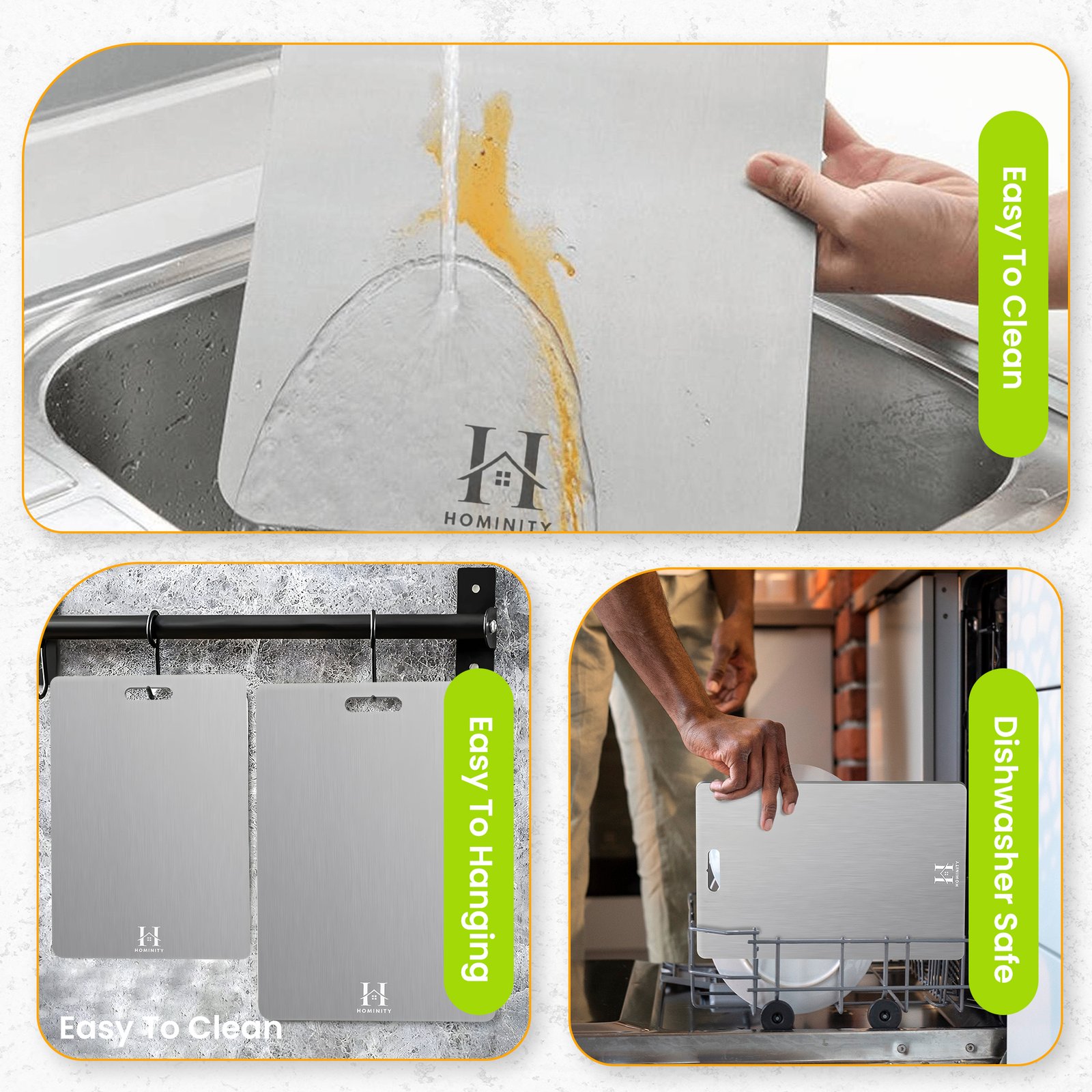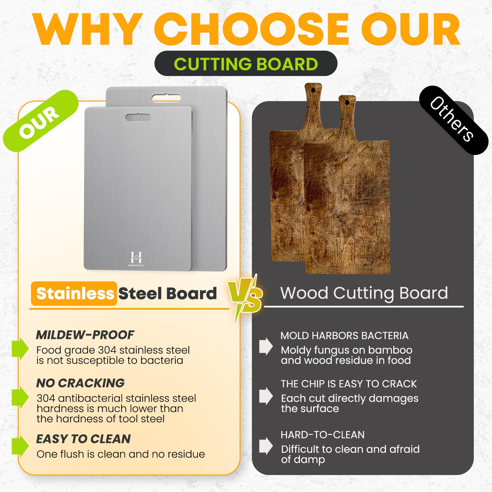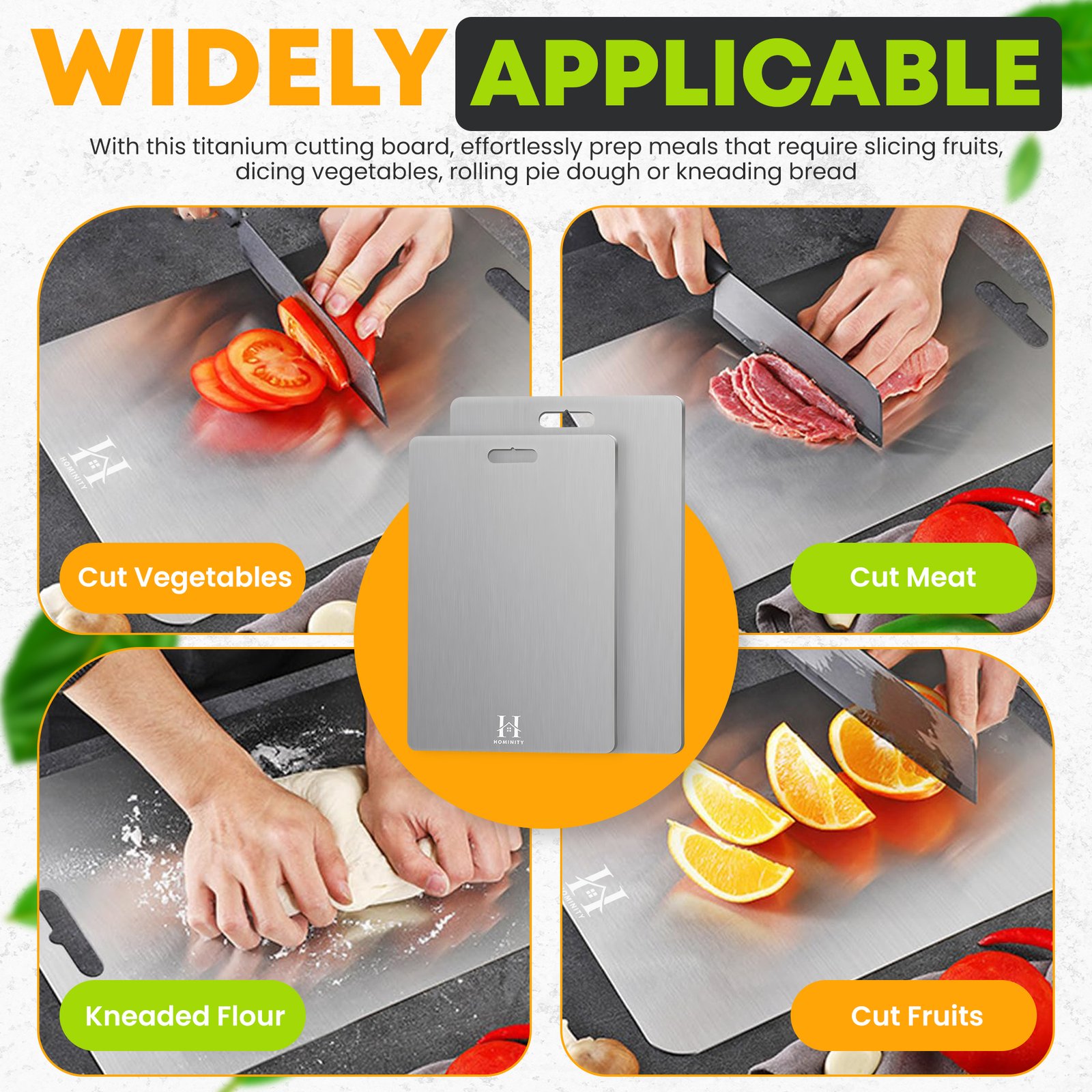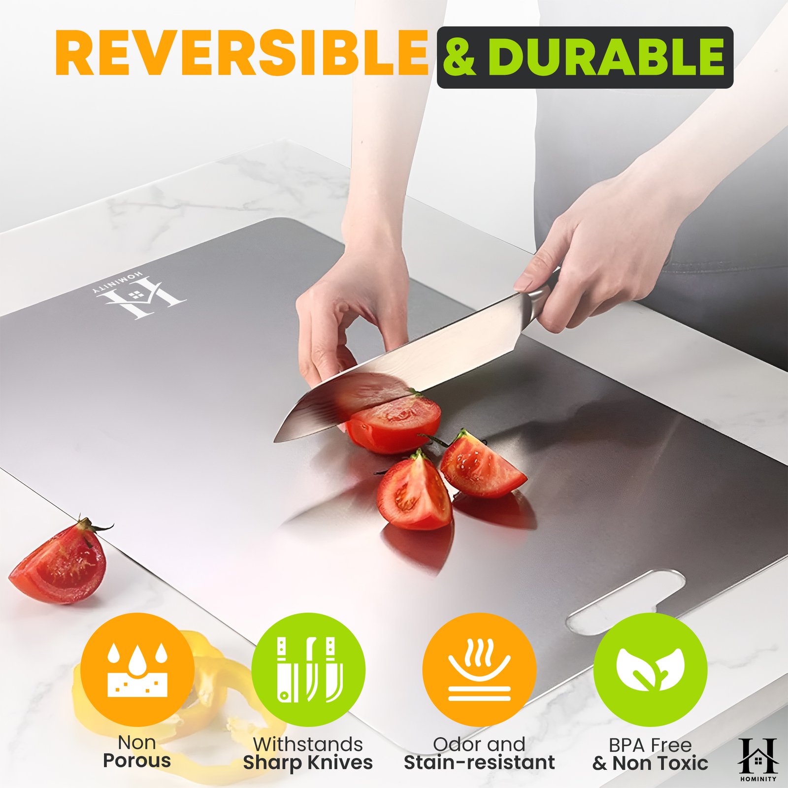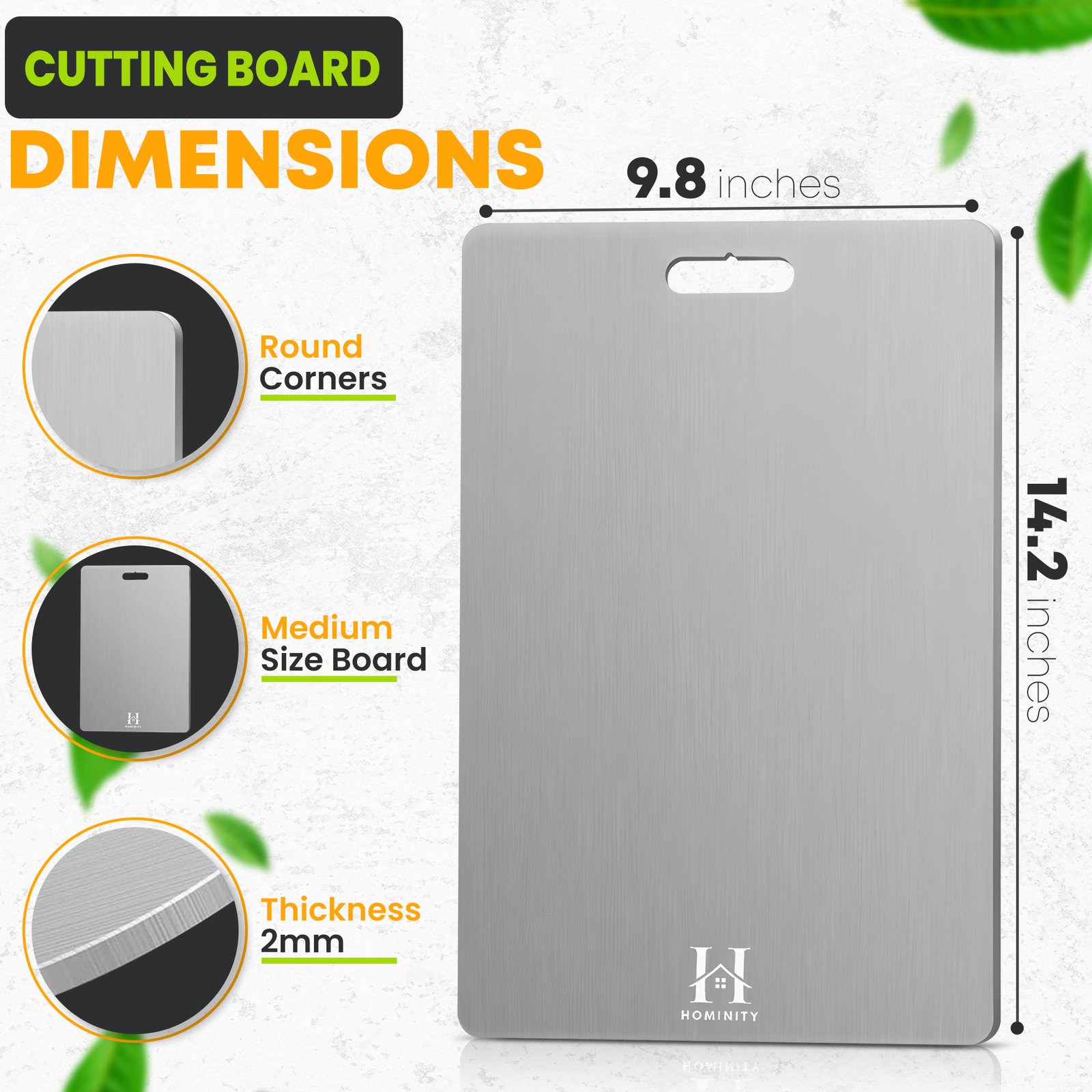 Elevate your culinary experience with the HOMINITY 2mm Stainless Cutting Board, expertly crafted from high-quality 304 stainless steel. This premium stainless steel cutting board set includes two sizes: